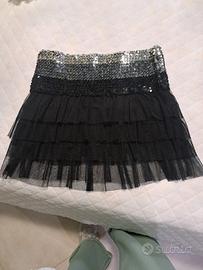 Gonna corta in tulle nero con baschina elasticizzata decorata con paiettes color argento. Taglia M.