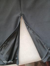 profondità dello spacco a seconda del gusto personale e della volontà di rendere piu elegante il completo. 2 piccole pinces garantiscono perfetta vestibilità sul bacino taglia 42.tessuto leggero gabardine di lana rasato mano setosa.