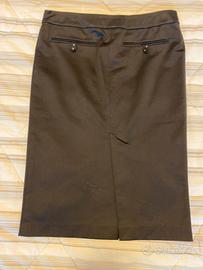 Gonna longuette nera Carla G. tg. 38, vita bassa, con spacco e due tasche posteriori chiuse con bottone. Composizione come da foto etichetta.