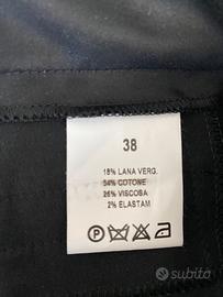 Gonna longuette nera Carla G. tg. 38, vita bassa, con spacco e due tasche posteriori chiuse con bottone. Composizione come da foto etichetta. Nuova con cartellino e bottone di riserva. #carlag #longuette #nera #vitabassa #xs #taglia38 #lana #cotone
