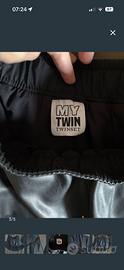 Gonna nera in ecopelle con borchie ,con sottogonna (fondo in pizzo) a ruota .Tg m