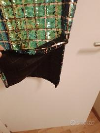 gonna in paillettss verde e oro con piccolo spacco laterale