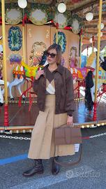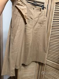 Un altro meraviglioso pezzo di sfilata veramente particolare, gonna pantalone in cotone pesante, color cammello, taglia 40 di Alberta Ferretti indossato una sola volta per un evento pagato una follia prezzo regalo. Sotto è un bermuda, la parte superiore si chiude a portafogli e rivela una gonna a pieghe un bellissimo capo d’abbigliamento per chi vuole risultare chic, elegante, raffinata e allo stesso tempo casual solo per intenditori e per chi non ama i soliti pezzi blasonati