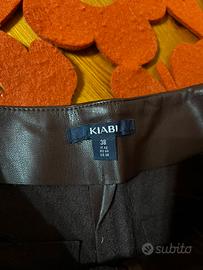Gonna con pantaloncino integrato in similpelle marrone