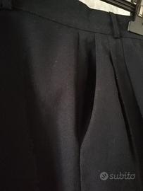 Gonna pantaloni di colore nero, perfetta sia accompagnata da accessori sportivi sia eleganti. Bellissima ed impeccabile da indossare perchè non perde mai la piega, essendo composta per il 73% da poliester e per il restante 27 da viscosa. Taglia 42, giro vita cm.70 circa,lunghezza cm. 53 a partire dalla vita, due tasche. E' degli anni 80, mai indossata, si svende per cambio taglia. Euro 25. Ritiro o spedizione a carico dell'acquirente.