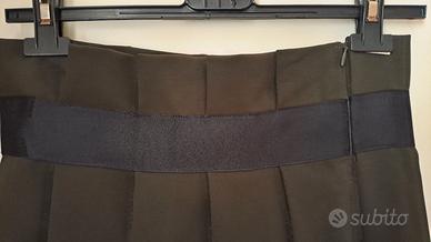 Splendida gonna midi plissé del brand italiano IMPERIAL, perfetta per un look elegante e sofisticato. Il colore è un versatile verde scuro che a seconda della luce può sembrare nero, con una fascia in vita a contrasto che aggiunge un tocco di raffinatezza.