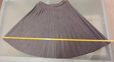 Gonna al ginocchio plissettata effetto scamosciato/suede. Bellissimo tono di grigio. Ruota ampia, taglia unica, lunga 56 cm, elastico in vita robusto, molto calda. nessun segno di usura. MADE IN ITALY. TAGLIA UNICA