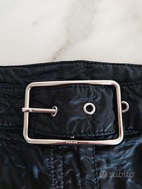 Gonna mini Prada originale in tessuto tecnico nero, molto pratica, non serve stirarla. Taglia 40 slim, lunghezza sopra ginocchio. portabile sia in primavera sia in inverno. Consegno anche a mano a Milano, no perditempo, non fate offerte se poi non le confermate