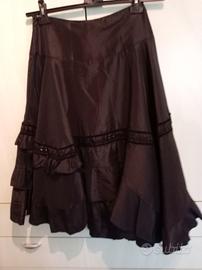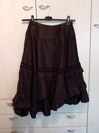 Gonna elegante da sera a ruota con balze e ricami perline e velluto. In rasatello, lunghezza assimetrica, taglia S/M circonferenza vita cm 73, lunghezza da cm 70 a 80.