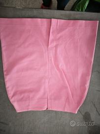 Gonna corta rosa con dettagli zip sulle tasche. - Tessuto testurizzato. - Zip argentate. - Vita alta.