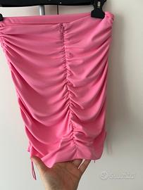 MiniGonna rosa Zara taglia M nuova con arricciature regolabili laterali e arricciatura posteriore, foderata, cerniera tutto come nuovo. Bel tono di rosa