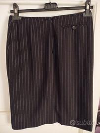 Gonna sartoriale al ginocchio, con spacco semi laterale rifinito con occhielli e nastro in finta pelle,taschino posteriore con bottoncino, Fodera interna, chiusura con lampo posteriore, rifinitura in vita. Ottima vestibilità. Nuova. Made in Italy.