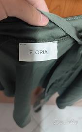 Gonna satinata verde muschio Floria Made in Italy, modello svasato elegante con nastro in vita regolabile, lunghezza totale 43cm, tessuto lucido composto da 95% poliestere e 5% elastan per una vestibilità confortevole, perfetta per cerimonie o look casual chic, capo di alta qualità prodotto a Prato, condizioni ottime e tessuto antipiega gonna in satin color verde muschio, un capo elegante e versatile Tessuto satinato lucido Vita alta con cinturino Lunghezza al ginocchio Made in Italy