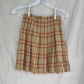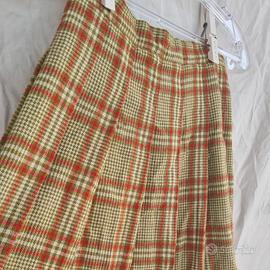 Vendo elegante gonna plissettata in lanetta con motivo pied de poule e quadri scozzesi nei toni del beige, verde salvia e rosso mattone.