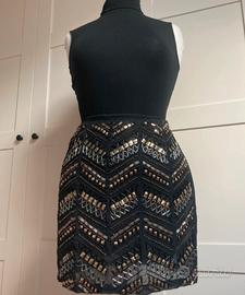Gonna Silvian Heach nuova con cartellino. Impreziosita da applicazioni di perle, paillettes e metallo oro/ argento. Tutta foderata, zip sul fianco, un capo originale come regalo, per le feste e veglioni in arrivo.