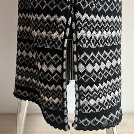 Gonna midi originale di STELLA ZWIEB in pura lana merino extra fino con lavorazione jacquard nei colori nero, bianco e grigio, prodotto in Italia da sarte locali