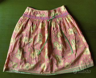 taglia 2 (direi una s ma se volete posso prendere le misure). La gonna è caratterizzata da una stampa floreale su sfondo rosa, con dettagli in verde e lilla. È in ottime condizioni, indossata solo un paio di volte. Ideale per aggiungere un tocco di colore al tuo guardaroba. Per ulteriori informazioni o per vedere altre foto, contattami!