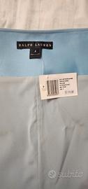 Gonna tg. M, nuova, colore azzurro, apertura a cerniera, 94% cotone e 6% elastane. Nessun difetto. Misure: in vita, da fianco a fianco, 41 cm. Larghezza massima, da fianco a fianco, 50 cm. Lunghezza, 41 cm.