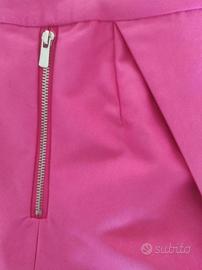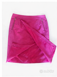 Vendo bellissima gonna color fucsia acceso, una tonalità vibrante super primaverile ed estiva, vivace e luminosa, perfetta per dare subito carattere a qualsiasi outfit. Il modello ha una linea femminile e slanciata, con vita leggermente bassa e lunghezza che arriva appena sopra il ginocchio (lo sfiora, lasciandolo appena intravedere). Lo spacco frontale è il dettaglio protagonista: parte dall’alto e scende in modo naturale, creando un effetto raffinato ma anche un po’ sensuale, senza essere eccessivo. 📏 Misure circa: lunghezza: 57 cm girovita: 78–80 cm veste una 42/44 italiana Le tasche sono finte, ma impreziosite da cerniere argentate decorative che danno un tocco moderno e curato. La chiusura con zip posteriore. Perfetta sia per look più curati (con camicia o tacchi) sia per outfit più casual chic. Ideale per la stagione primavera/estate In ottime condizioni