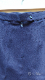 Gonna tubino in lana marcata Marina Rinaldi. Colore blu scuro con fodera, cerniera (funzionante) e bottone sul retro. Tg 19. Misure: circonferenza vita 76cm, circonferenza fianchi 96, lunghezza 53cm. Ottime condizioni.