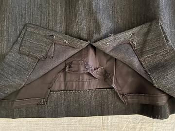 Gonna sipra il ginocchio attillata vintage di volore grigio. Pura lana morbida. Irtima per occasioni formali. Vita stretta. Le misure sono nelle foto.
