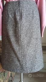 Gonna taglia 44 originale Benetton in tessuto con disegno a piccola lisca di pesce o pied de poule colore marron e bianco, foderata. Leggermente svasata con spacco centrale davanti lungo cm 28. Va portata leggermente giù di vita e alcune misure di riferimento sono: Vita cm. 82 Fianchi 106 e lungh. cm. 63. Il tessuto è composto da lana 70% poliestere 25% altro 5% La fodera è viscosa 42% e acetato 58% Occasione a 10 euro Spedizione da concordare