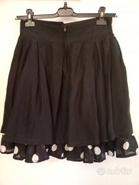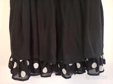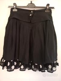 Gonna nera, made in Italy, in viscosa con balza a pois bianchi. Tg 44-42