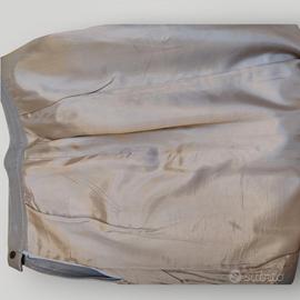 Colore grigio/tortora, linea aderente con spacco posteriore e chiusura con zip.