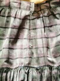 Magnifica gonna vintage tutta in vera pelle di renna lavorata come una stoffa. Morbidissima. Color caki con stampa tartan verde e rosa. Zip e bottone posteriori. Inserti in vero pitone. Foderata. Lunghezza cm. 87. Acquistata da Franz Kraler, Dobbiaco (Bz). Fa parte di un completo che all'epoca costò oltre il milione di lire (la giacca è anch'essa tra i miei annunci) . Come nuovo, NON è ricondizionato. L'etichetta con c'è.