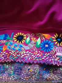Splendido ricamo artigianale sul bordo, con fiori, volatili, etc.