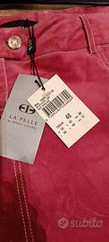 gonna in vera pelle scamosciato rosa ..articolo molto particolare ..taglia 48/52 colore Rosa -corallo ..Brand La Pelle di Diana Gallesi.. foto disponibili nuovo con cartellino ..