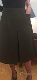 1_ Gonna verde scuro in puro Loden, modello sportivo con tasche, veramente ben fatta, perchè considerando la pesantezza del tessuto e stata lavorata in modo da risultare leggera e morbida da indossare. Taglia 48