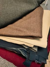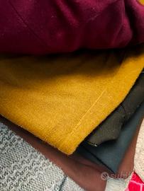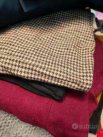 colonna di gonne sotto il ginocchio di varie stoffe, cotone, lana ecc...