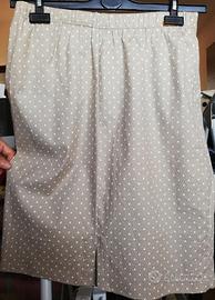 Due praticissime gonne a pois, una a sfondo blu, l'altra a sfondo chiaro (beige). Hanno elastico in vita e un piccolo spacco dietro. Il tessuto (leggero) è per il 90% cotone e il restante 10% in lycra, che ne garantisce l'elasticità.