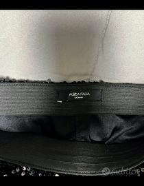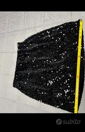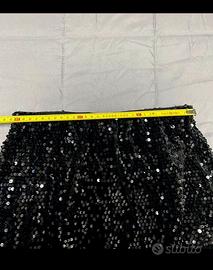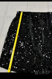 Gonna nera con paillettes , Piazza Italia , elastico in vita Fodera interna l’etichetta è stata tagliata ma è la misura S ( misure col metro in foto ) Usata veramente pochissimo