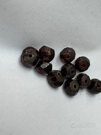 N 10 granati antichi sfaccettati forati da infilare per realizzare collana o bracciale o orecchini pendenti. Diametro 6/7 mm Colore tipico del granato vinaccia scuro Anni 40