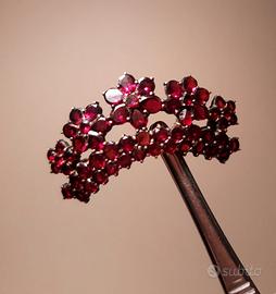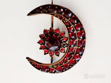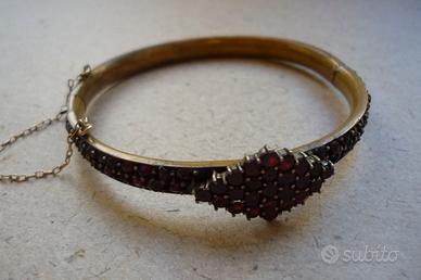 I prezzi variano. 2 foto: Bracciale in рietra granata, рietra granata di Boemia, inizi del XX secolo, tombak, catena di sicurezza, prezzo 320 euro; 3 foto: Orecchini vintage con viti. La lunghezza totale è di 2,3 cm. La dimensione del ciondolo stesso è di 1,4 x 1,1 cm. Pendente Tombak, lucchetto - argento sterling 875, TF5, valore del marchio. Le viti sono funzionanti, il granato è naturale. Prezzo 175 euro; 4 foto: Spilla antica *Mezzaluna*, granati di Boemia, tombak, prima del 1940, condizioni perfette, ma manca una pietra, compresa nel prezzo. Europa. Raro, perché dentro non c'è una stella, ma un fiore. La serratura funziona. Prezzo 350 еuro; 5 foto: Anello in oro, anni '50, misura 18 - 18,5. Prezzo 230 euro; 6 foto: Spilla antica *Corona*, pietra granato di Boemia, antecedente al 1920 -1930, tombacco, chiusura funzionante, dimensioni 4 x 1,7 cm, rara, una pietra è stata inserita in un secondo momento (inclusa nel prezzo), tutto il resto è originale, qualità eccellente, tonalità molto bella. Prezzo 325 euro.