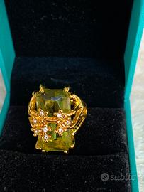 Grande anello cocktail bigiotteria color oro con pietra verde e finti brillantini. Misura anello: 13,5. misura pietra 20 mm x 10 mm. Con scatolina