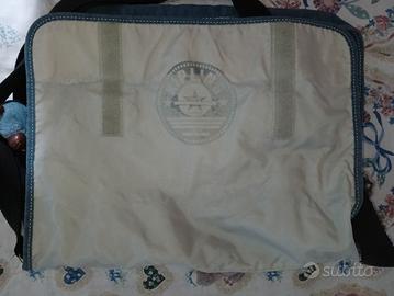 Pratica borsa a tracolla con una grande tasca esterna! All'interno presenta due "scomparti" e contiene una tasca grande, due tasche medie e due piccole tasche porta cellulare/porta iPod ecc. In esterna è ancora buona, mentre all'interno è un po' rovinata, come mostrato in foto. Ideale per scuola/università o per un breve viaggio.