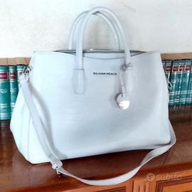 Vendo capiente borsa in poliestere effetto pelle di coccodrillo bianca lucida. È suddivisa in 3 scomparti interni in tessuto rosso bordeaux, di cui uno con ulteriore taschina chiusa con cerniera, come lo scomparto centrale, mentre gli altri due hanno la clip. E' dotata di due manici e di una tracolla removibile. Sul fondo ha delle borchie per non rovinarlo. Misure indicative 40 x 30 x 15. Marca Silvian Heach. Usata poco e ben tenuta. Sono disponibile per la consegna a mano in zone limitrofe (Monfalcone, Staranzano, Fiumicello, ...)