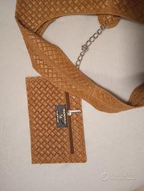 Borsa nuova munita di portafoglio interno attaccato con una catenella.