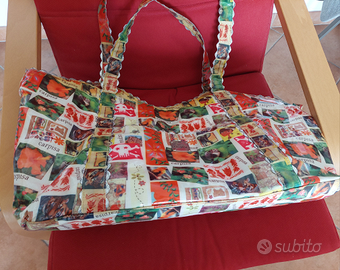 Grande Borsa mare Carpisa plastificata e foderata chiusa co cerniera. Misura 62x30 cm, base 46x21 cm, manici 65 cm. 2 tasche esterne con velcro, 1 interna con cerniera e 2 aperte