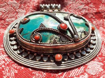 Pendaglio in stile etnico, Asia, Tibet, India. Forse prodotto in Italia.