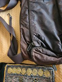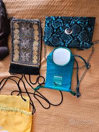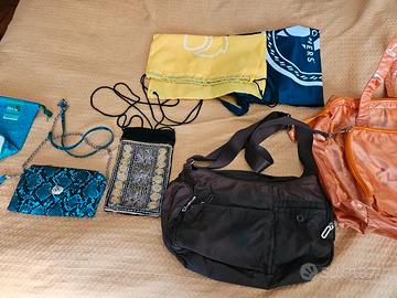 Borsa mare Biagiotti nuova lievissimo segno davanti Borsa Samsonite marrone molto pratica con tante tasche un pò sbiadita in alto Borsetta velluto e ricami per cellulare Mini borsetta Carpisa nuova ma un pò rovinata all'interno In omaggio Portabibita frigo sacco portascarpe Skechers sacco giallo