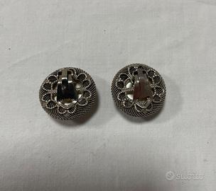 Grandi orecchini a clip perla ovale e lavorazione metallo intorno e sul reto. vintage anni '80. Diametro orecchino 3 cm. circa