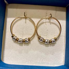 Attenzione: I cerchietti sono laminati gold filled, ciò significa che l'oro é molto più resistente e duraturo rispetto alla comune placcatura. Punzonatura gold filled e dettaglio della chiusura “a scomparsa” in ultima foto. Quelli in argento 925 non hanno il punzone gold filled ma hanno il punzone 925.