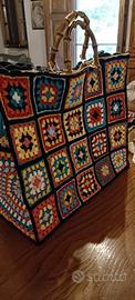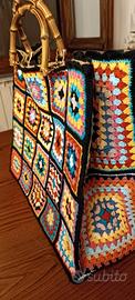 Borsa in iuta rivestita con piastrelle Granny square molto ricercato come modello poiché di moda in questi ultimi anni. si tratta di una tote bag,molto rifinita ed elegante con molto spaziosa per qualsiasi utilizzo, dallo shopping,al mare alle vacanze e soprattutto da sfoggiare ogni giorno per esser sempre alla moda.E'rifinita con manici in bambù originali e chiusa con 2 clip magnetiche in metallo. la borsa misura 45 cm larghezza,40 cm altezza e 20 cm di profondità.Possibile averla nei colori preferiti !! contattatemi in chat se interessati!