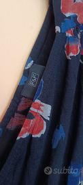 Grazioso vestitino prendisole a fondo nero con fiori di color arancione e blu, tessuto fresco, adatto per una ragazza giovane