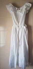 Grembiule bianco vintage di cotone taglia S ,con tasche, pettorina e bordi di pizzo.