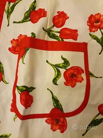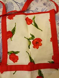 grembiule con pettorina. i festini laterali rossi e interno bianco a fiori mai usato. senza cartellino brand Alabardi Casa